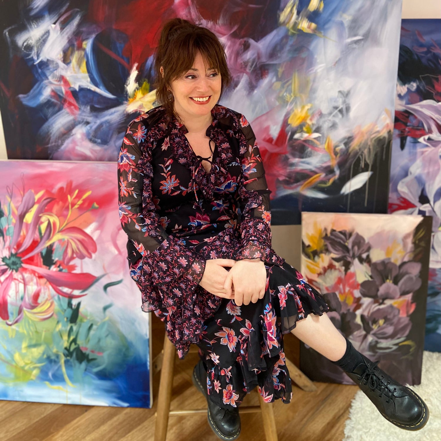 I’ve always felt most at home with a paintbrush in hand. My work is a joyful celebration of nature and colour, evolving into expressive, playful pieces that capture freedom and joy. Each painting begins with intuition and movement, unfolding into vibrant layers that reflect the beauty and energy of the natural world.