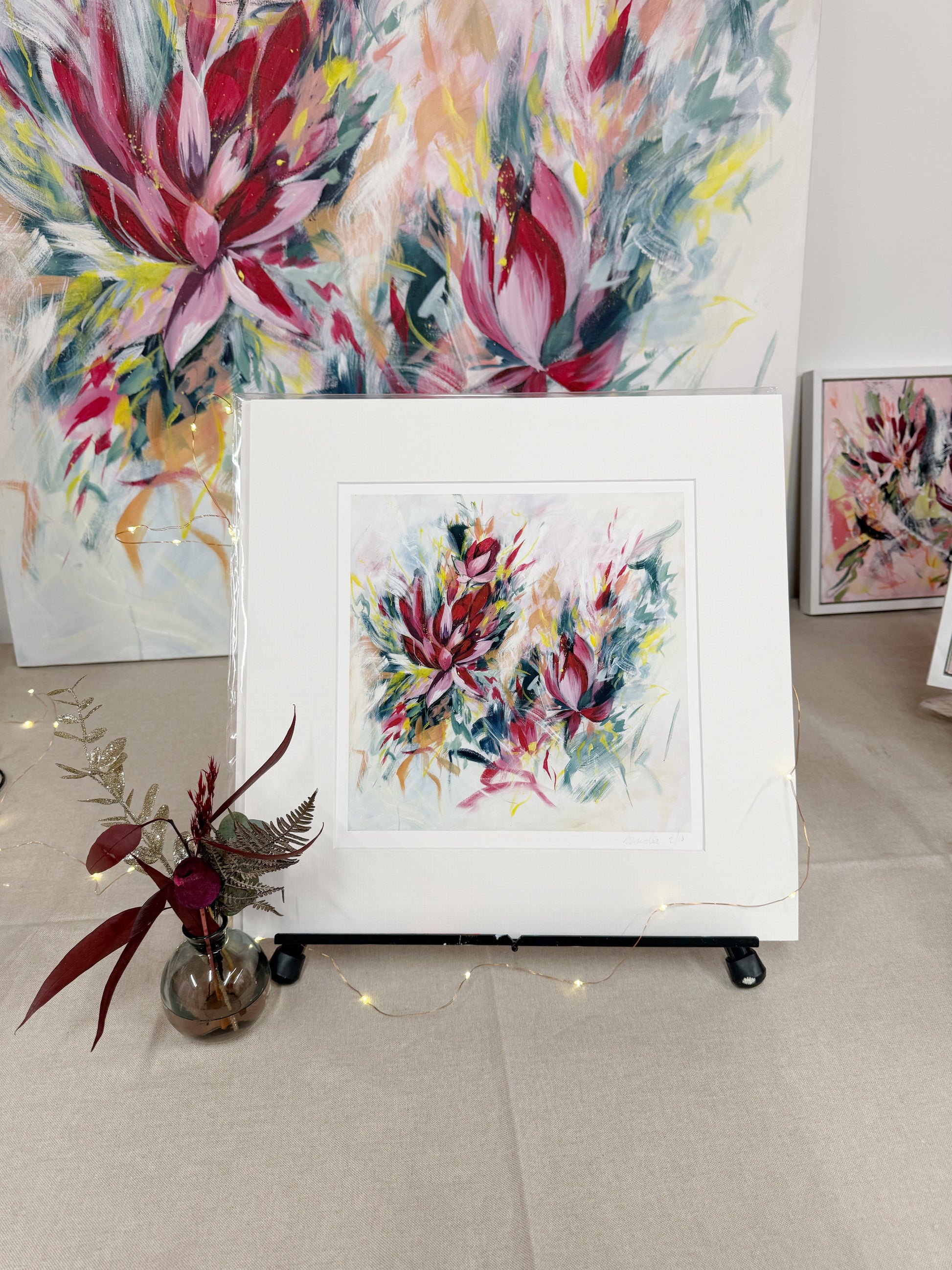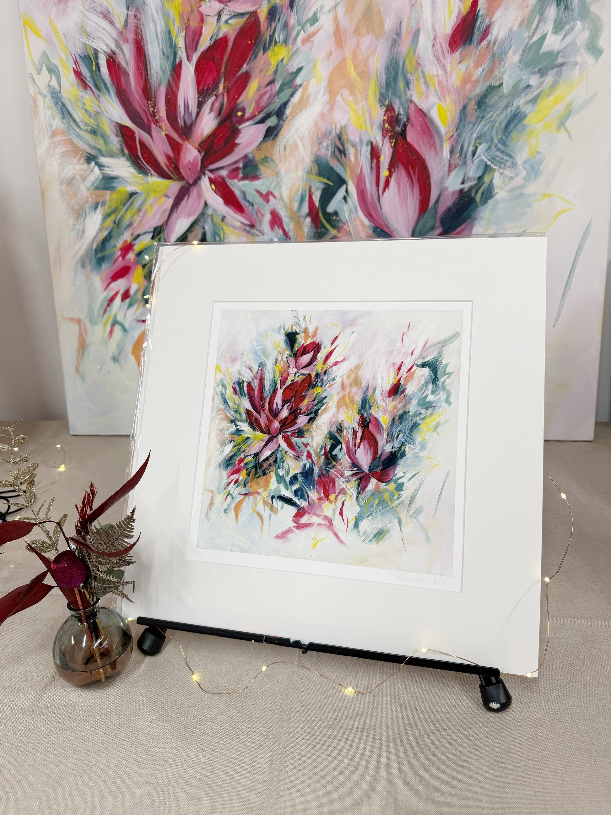 Bring warmth, movement, and modern artistry into your living room, bedroom, office, or creative space. Crimson Blossoms fine art paper prints offer a timeless way to elevate your walls with colour and sophistication.